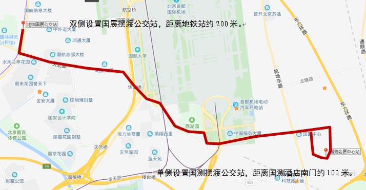 双向开通国测会展中心南门—M15号线地铁国展站公交摆渡线。配车5辆,(运营3辆,备班2辆)运营时间为5月21、24、25日早6:30-晚20:00,5月22、23日早6:30-晚22:00。根据导航年会客流情况,我局将安排专人进行车辆调度随时调整发车间隔,运营间隔约30分钟,中途不设??空?。